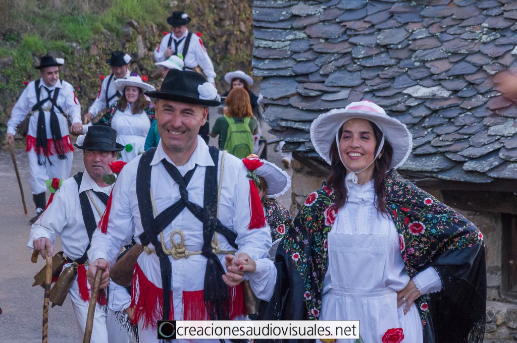 Desde hace ya varias décadas descendientes de emigrantes de este pueblo se preocupan por recuperar una vieja tradición de la que escucharon relatos de boca de sus abuelos. Con la llegada del Carnaval los jóvenes del pueblo se apartaban y se transformaban en bestias con cuernos de toro y cencerros atados a la cintura. Cubrían su rostro de un ungüento negro a base de aceite y ceniza de las chimeneas. Para resaltar su boca mordían trozos de patata. Recorrían campos y calles ahuyentando malos espíritus y de paso asustaban a las mozas del pueblo que para no ser reconocidas tapaban sus rostros con mascaritas blancas mientras guardaban silencio.