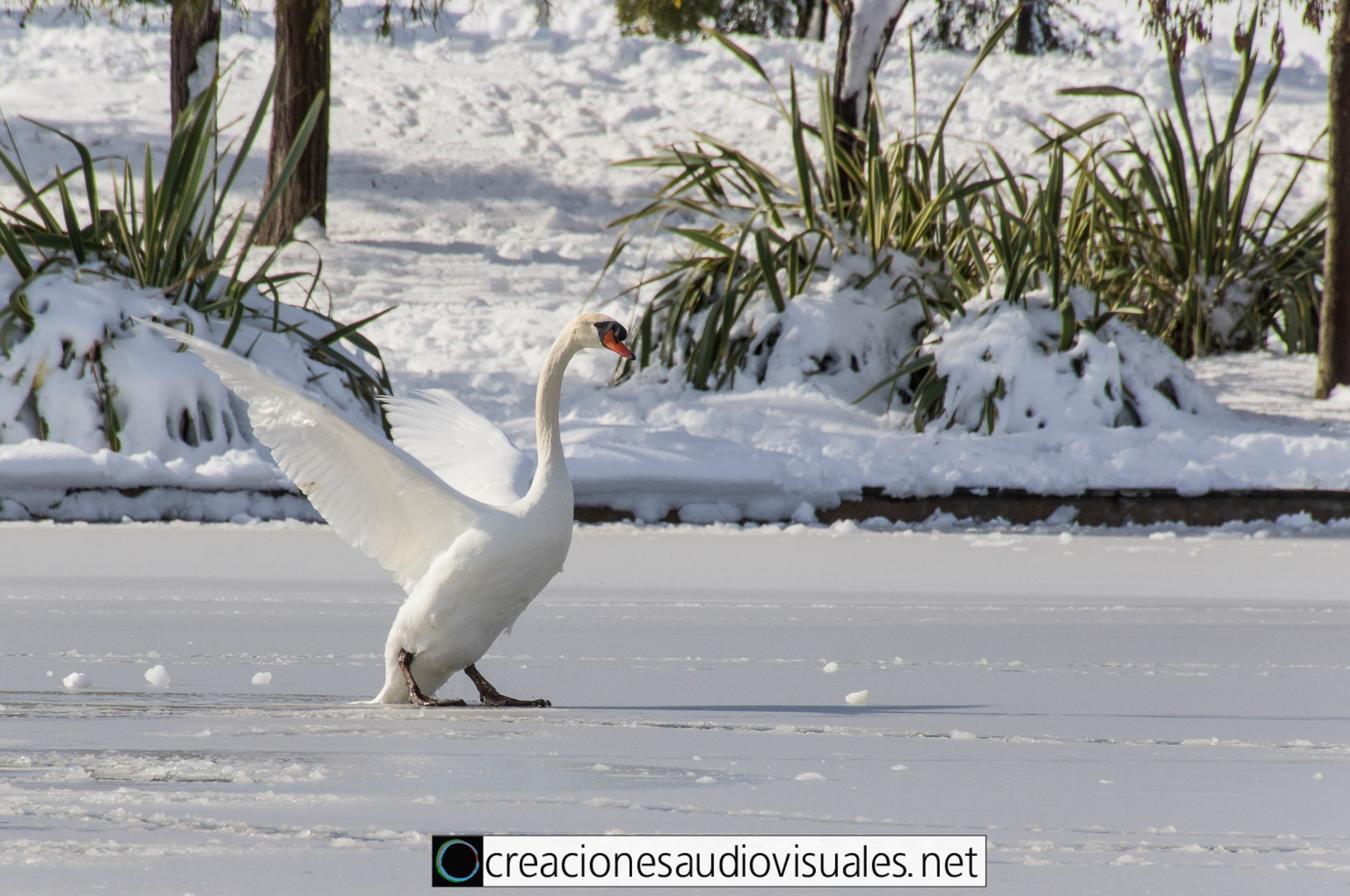 No todas las imágenes fueron de diversión. La inusual y monumental nevada trajo consigo muchos problemas de circulación y movilidad en las poblaciones, carreteras y caminos. Los equipos de Protección Civil, junto a Guardia Civil, Policía Local y otros voluntarios se emplearon a fondo para recuperar la vida normal en nuestro entorno. Desde este espacio quiero agradecer el esfuerzo y el compromiso de estos y otros cuerpos al servicio de la población. Y la mejor manera es mostrando como se dejaron la piel incluso para liberar a un cisne que parecía atrapado por el hielo en un estanque. No dudaron en meterse en las heladoras aguas…