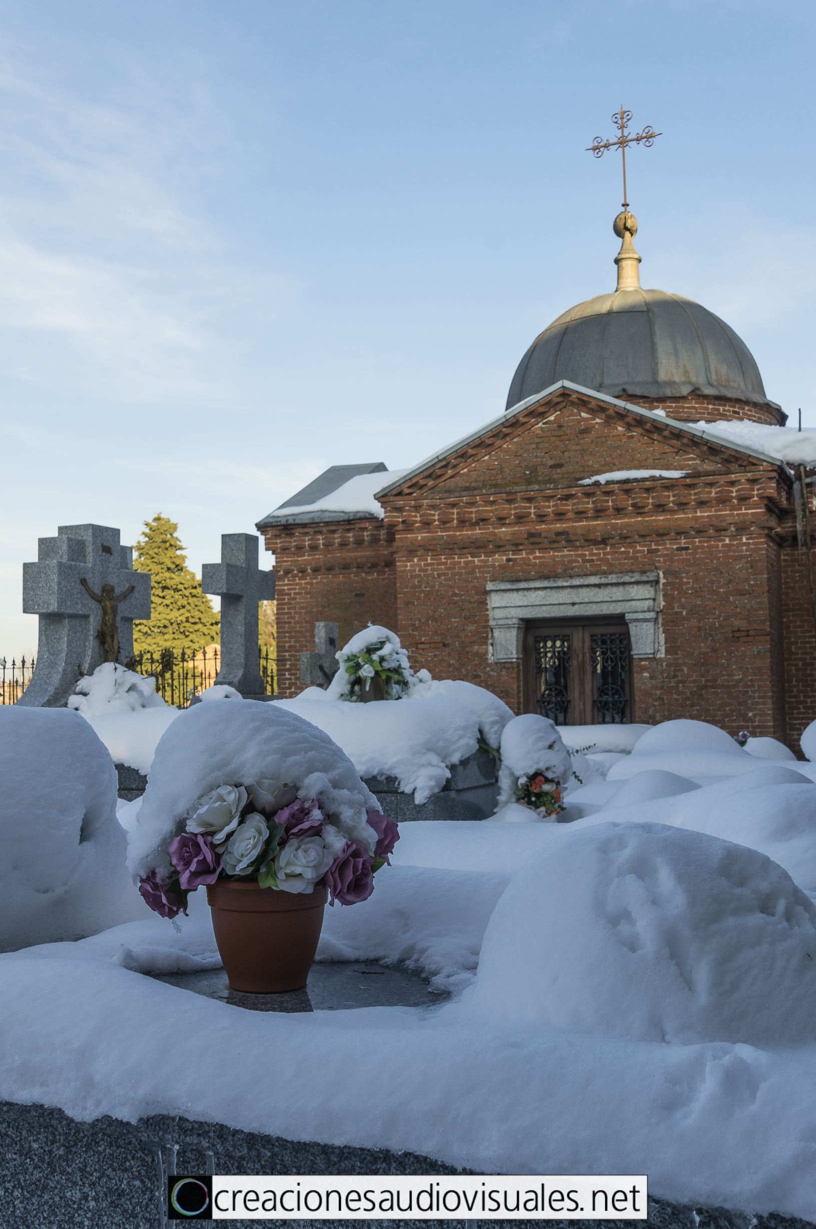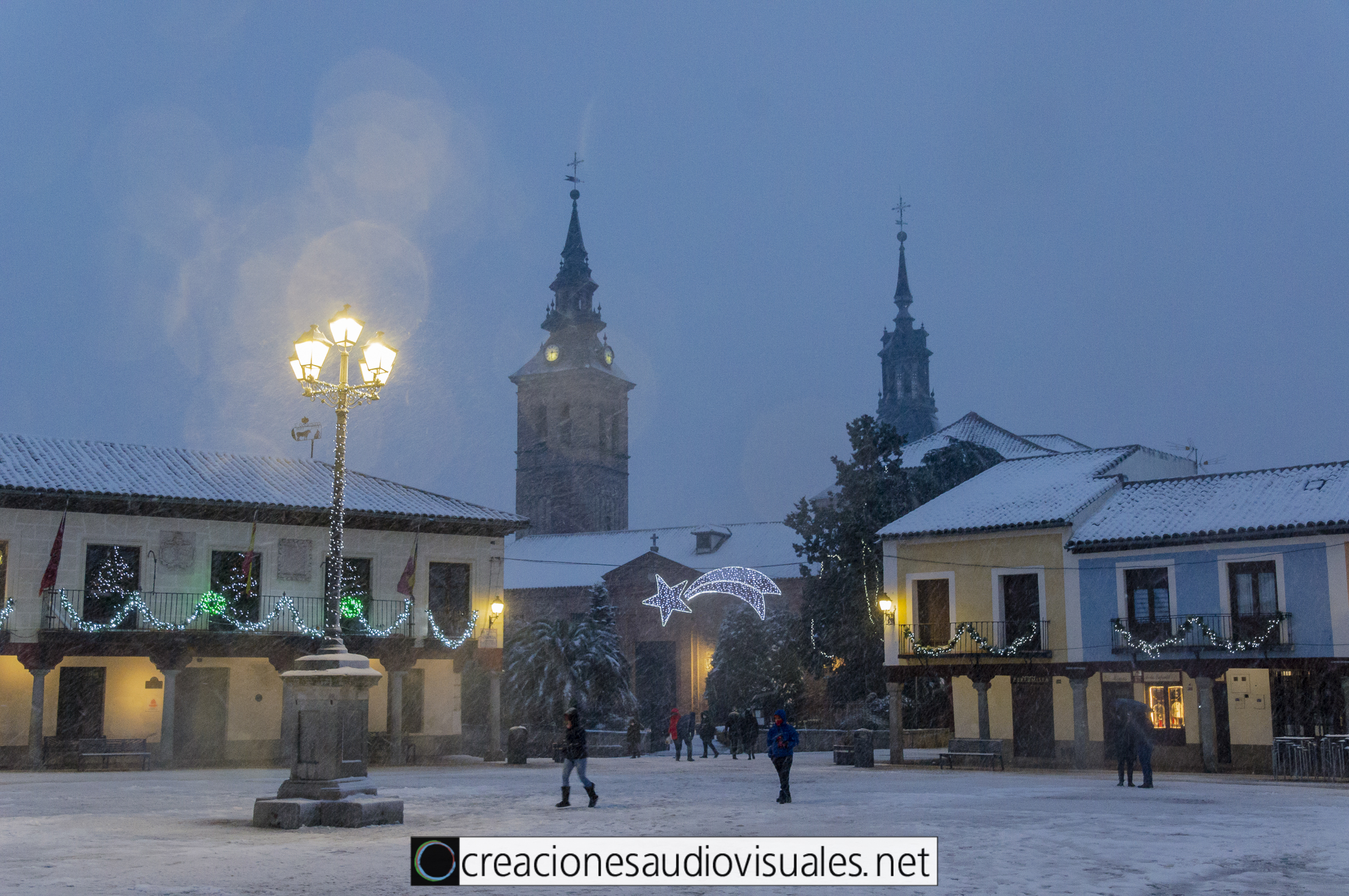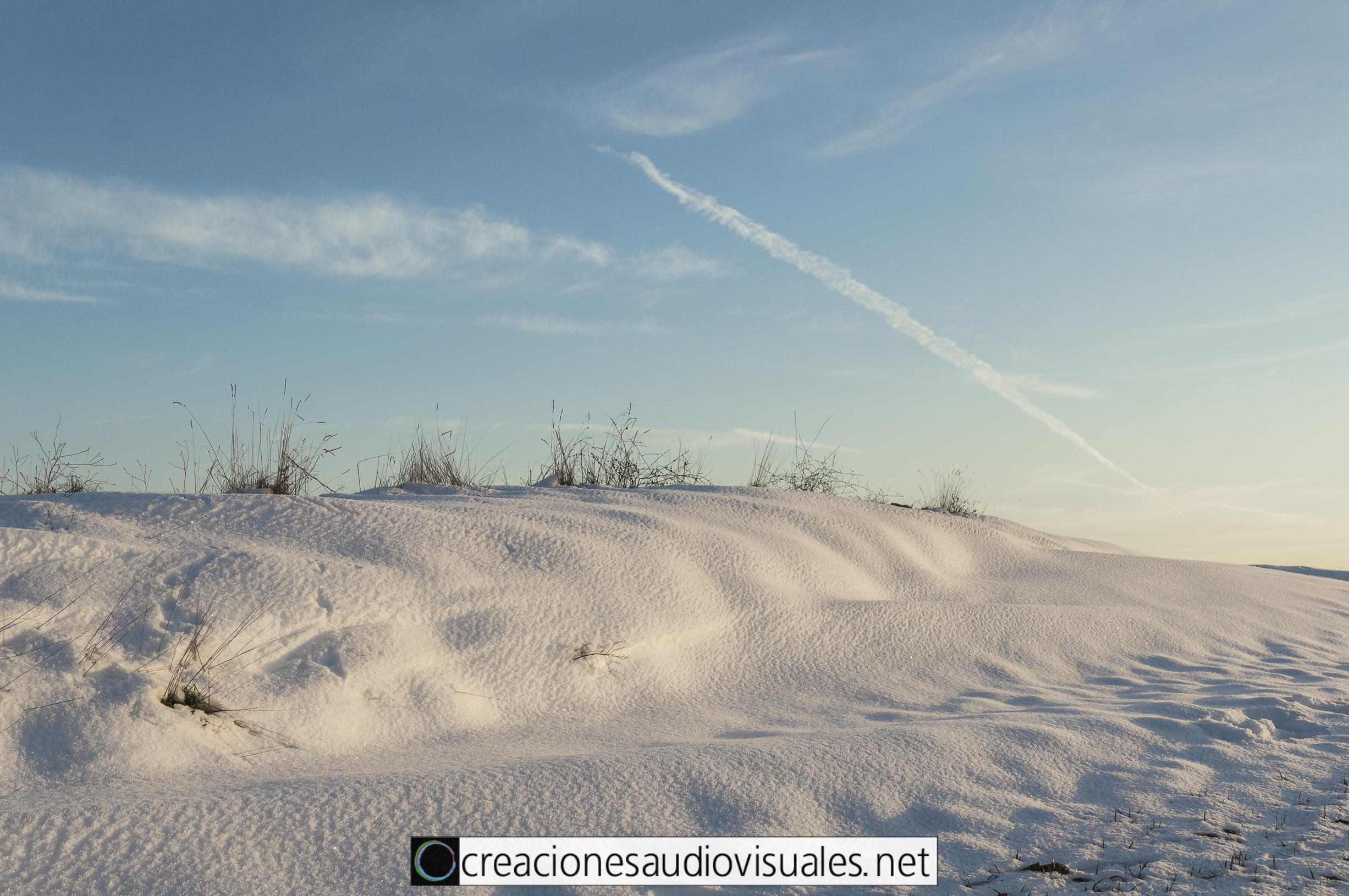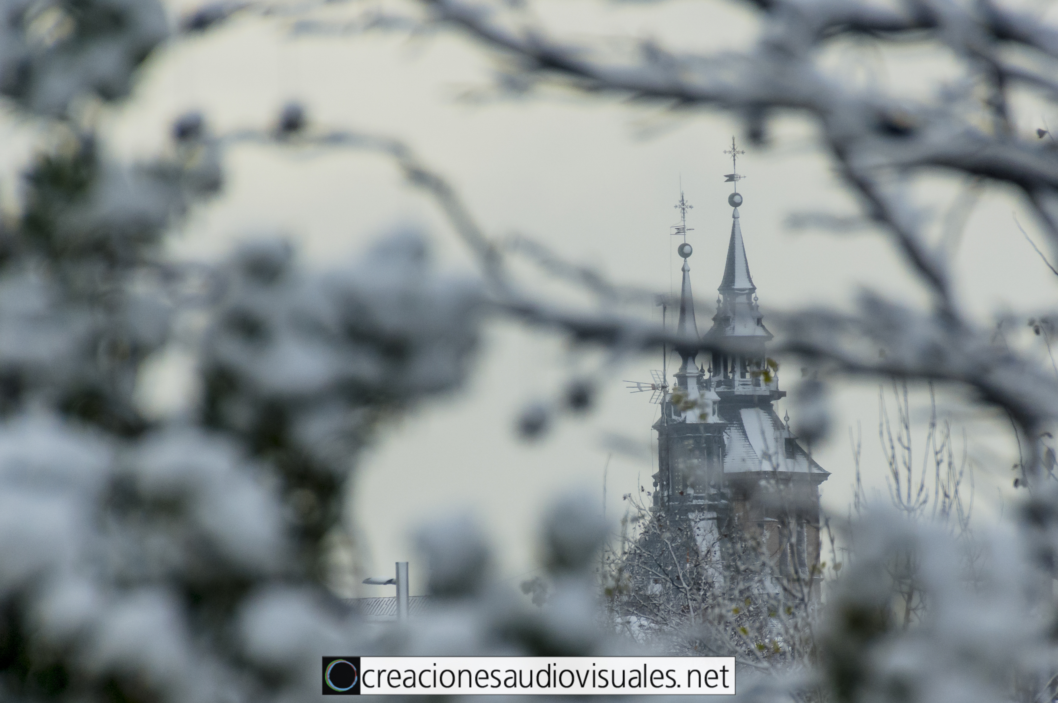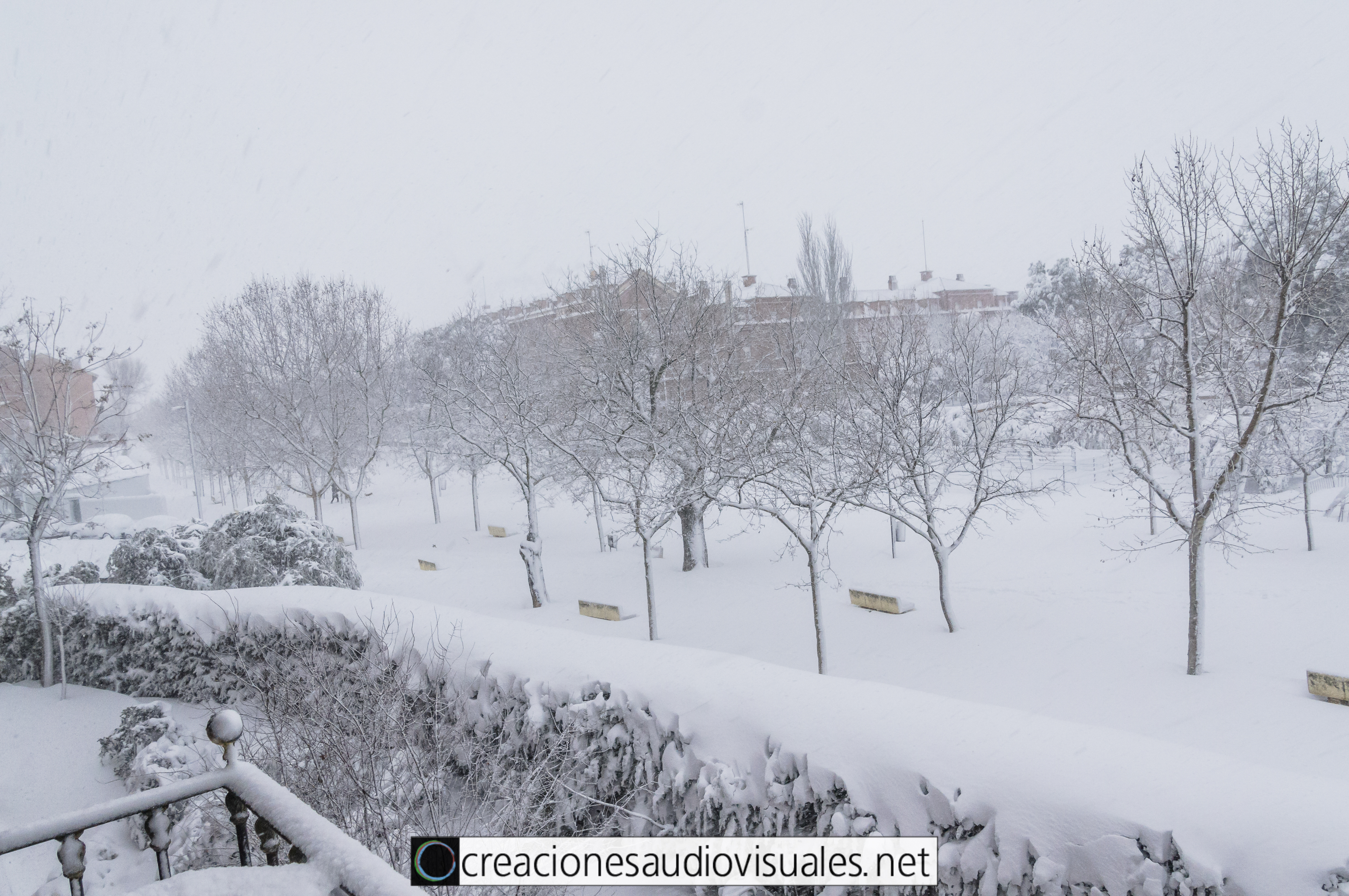 El temporal nos deja curiosas instantáneas de nuestros paisajes. Al fondo de un mar de nieve se intuye el skyline de Navalcarnero.