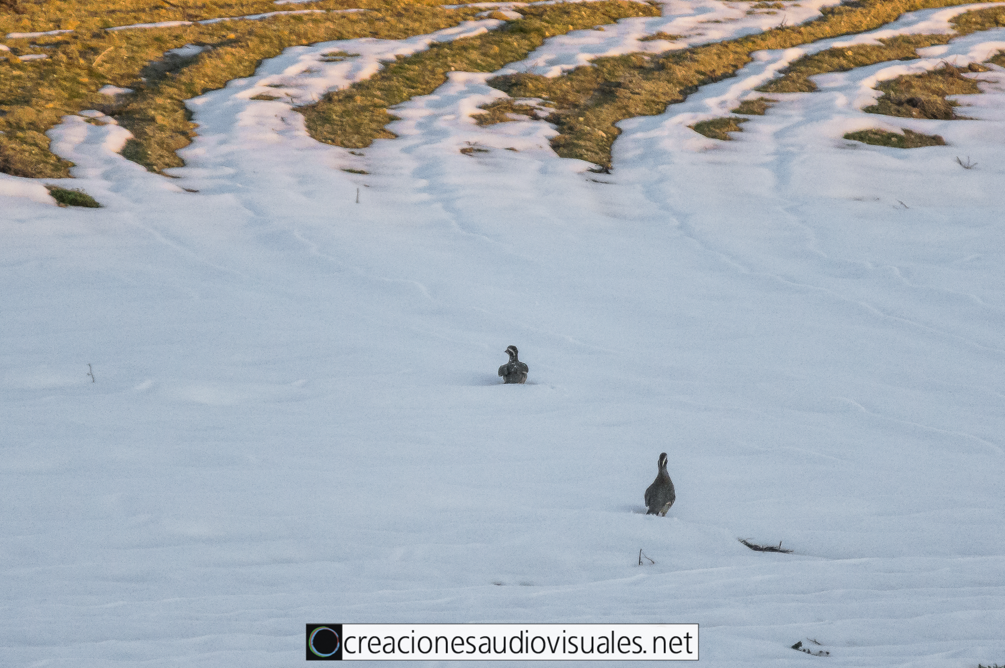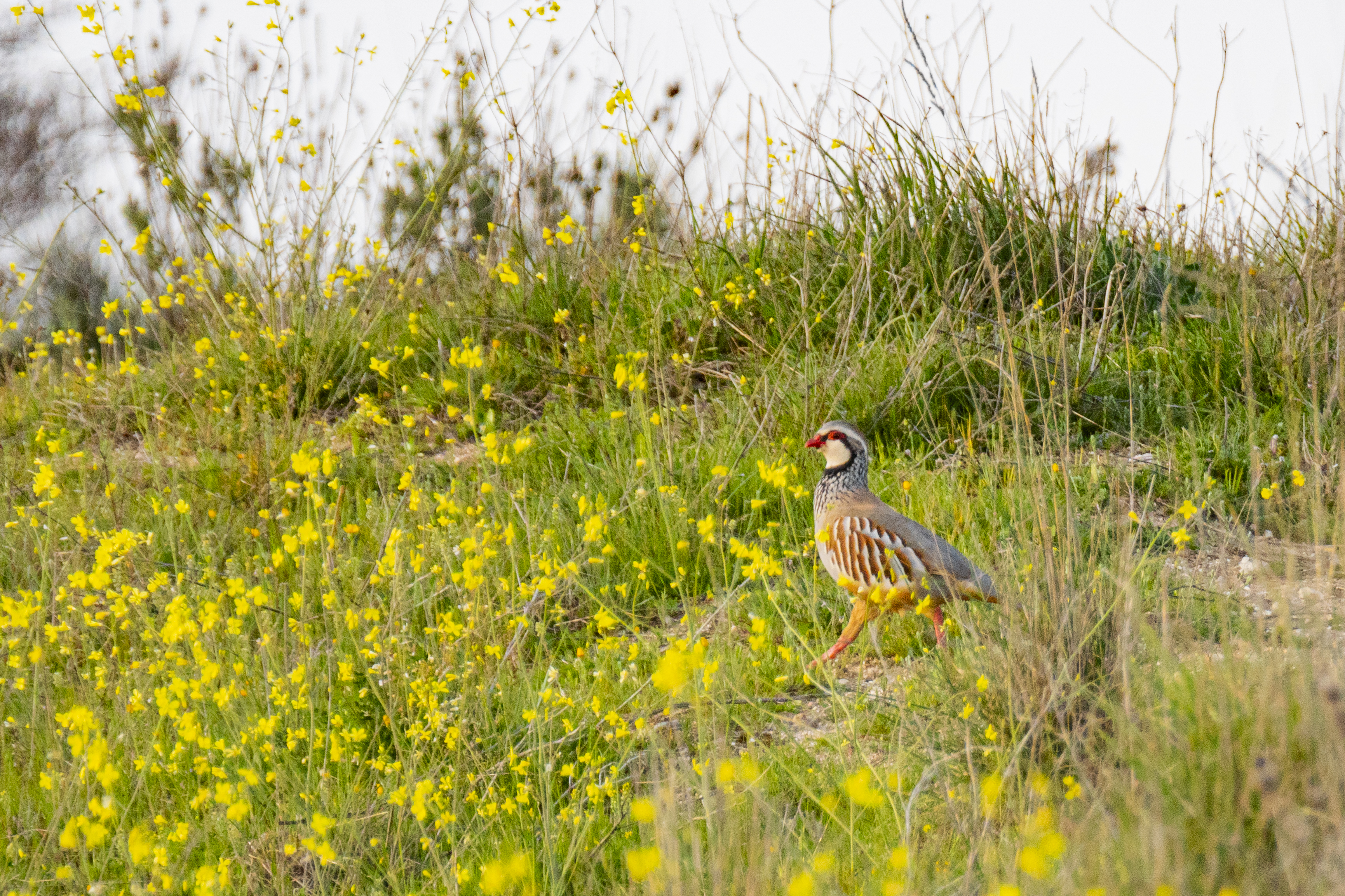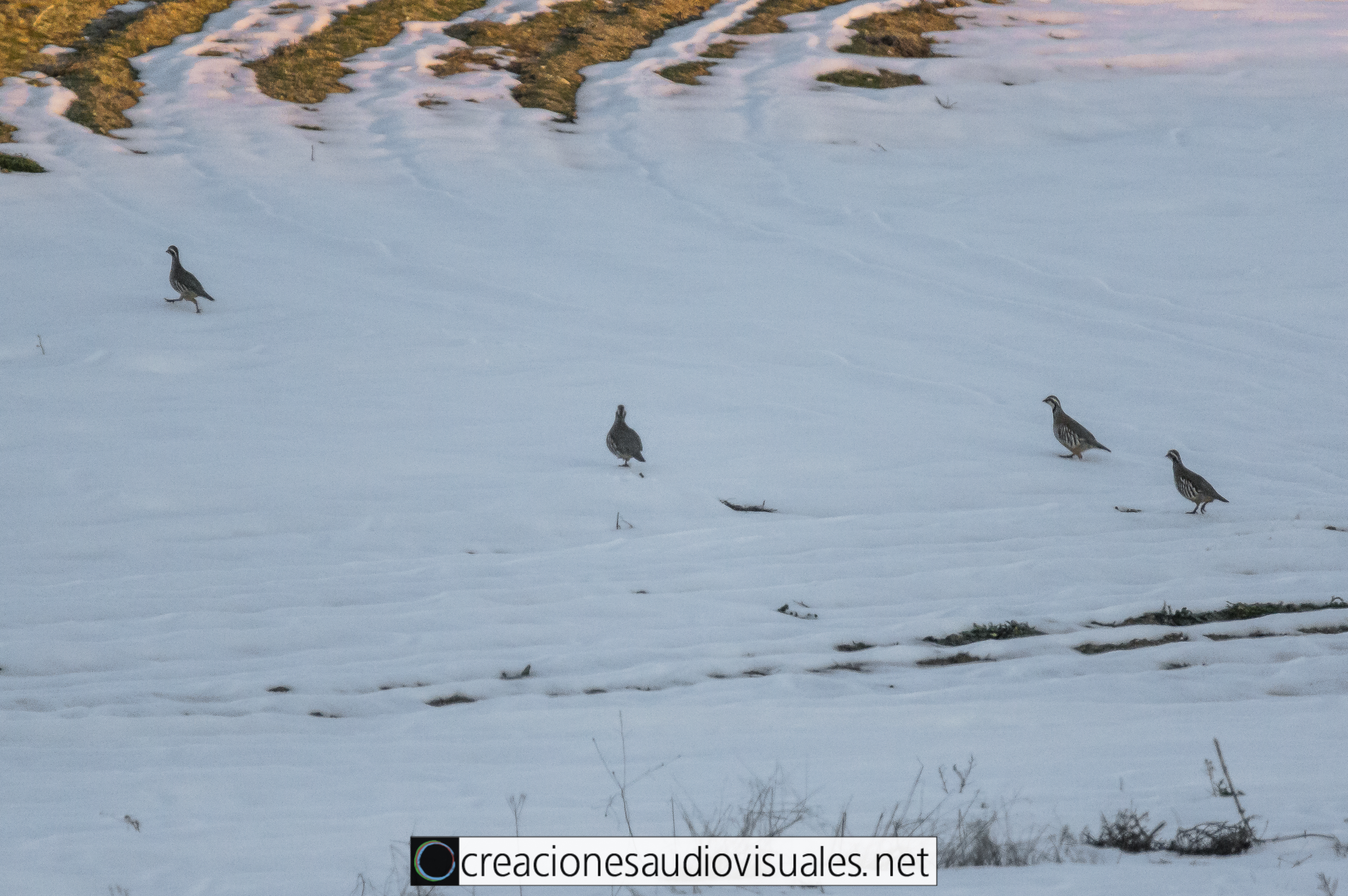 Los restos de la nieve en el campo madrileño no impide que las especies más cotizadas por los depredadores continúen con sus «quehaceres». Una liebre otea el horizonte, inmóvil, y permite una breve ráfaga con las últimas luces del día. El sonido del obturador asusta a un grupo de perdices rojas que ponen una cómoda distancia de seguridad frente a mi objetivo.
